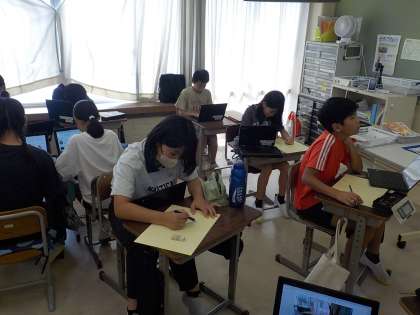 小学校生活の思い出が詰まった校舎の風景を描きました。
