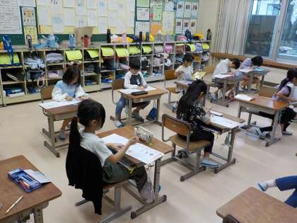 カタカナの書き取り練習をしました。一画一画丁寧に書きました。