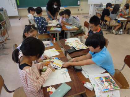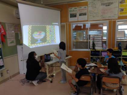 外国語活動では、自分のオリジナルのパフェづくりに取り組みました。すきなトッピングを英語で伝えたり、英語でジャンケンしたりして楽しみました。