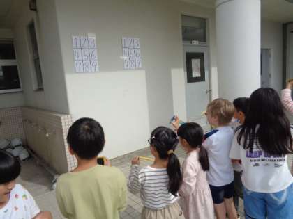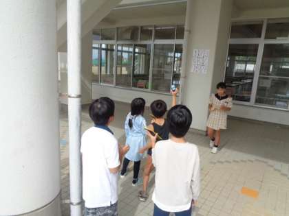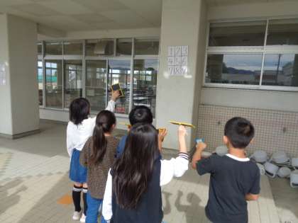 理科では、太陽の光の学習に入りました。今日は鏡ではね返した光を利用してまとあてゲームに取り組みました。鏡の角度や位置を調整して、まとに当たるように考えながら活動することができました。