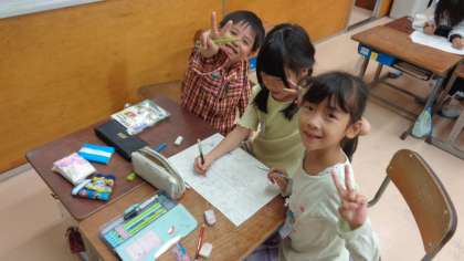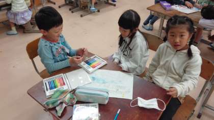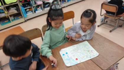 今日はグループですごろくをつくりました。それぞれ水族館をテーマにしたり、動物園をテーマにしたりと、楽しいすごろくをつくっていました。