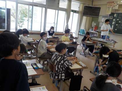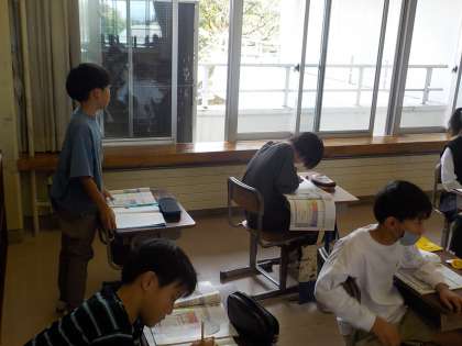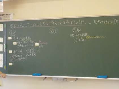 自然災害がときに身を守るための取組について学習しました。それぞれの立場でできることを考え、「自助、公助、共助」の取組として分類しました。