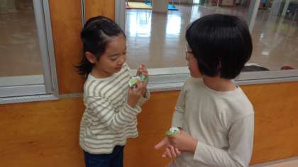 今日は、くり上がりのある足し算カードに取り組みました。友達と問題を出し合い、だんだん計算に慣れていく様子が見られました。