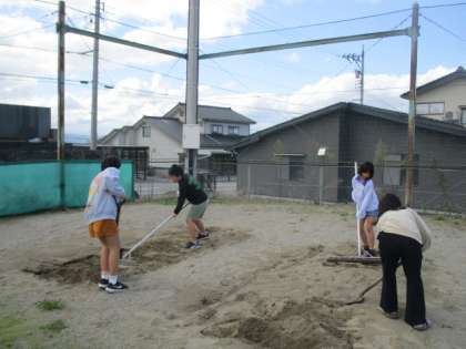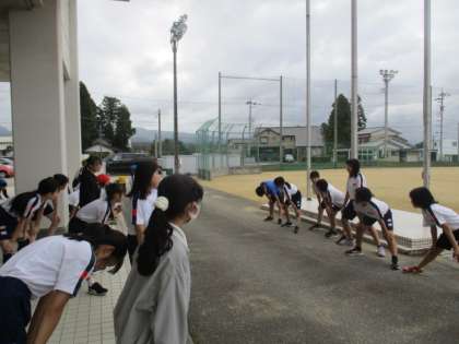 3年生と合同で行った体育では、準備運動をしたり、走り幅跳びの前に準備をしたりしていました。