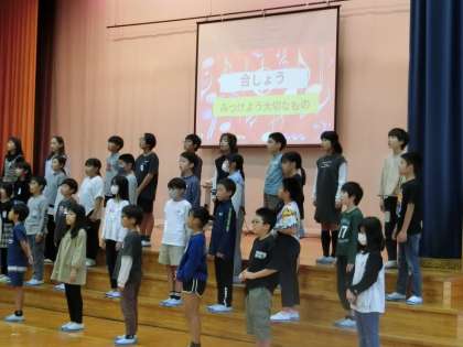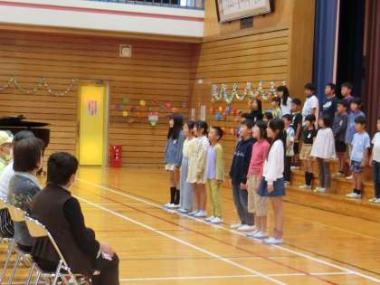 今日は、見守り隊の方、お話の会の方に感謝の気持ちを伝える集会がありました。そこで、3、4年生で「見つけよう大切なもの」を歌い、喜んでいただきました。