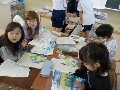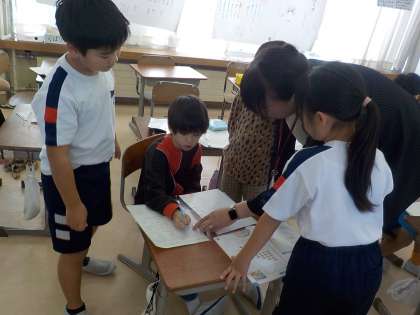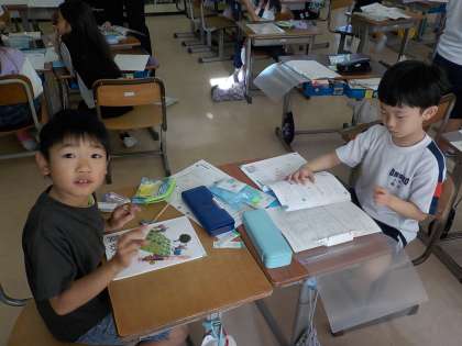 かけ算九九の練習をしました。五の段や二の段をクリアしたと喜ぶ様子が見られました。