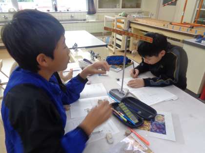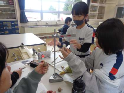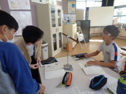 今日は、実験用てんびんを使って、つり合う条件を調べました。重りをいくつどこにつるすとつり合うのか。決まりをみつけたら、それが合っているかさらに実験です!