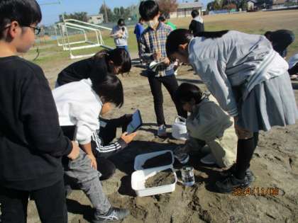 この単元では、実験を通して流れる水のはたらきについて調べています。