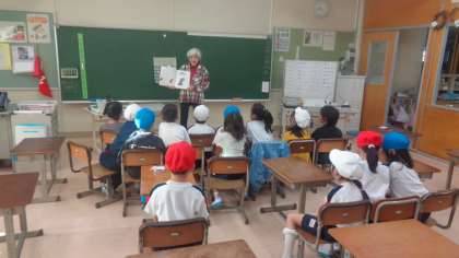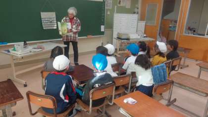 今日のお話は、おおかみさんが絵本を読んでもらいたくて、うさぎに読んでもらうところから始まる、あたたかいお話でした。子供たちはそんなあたたかい絵本の世界の中に入り込んでいる様子でした。