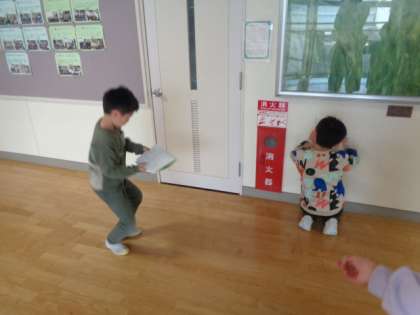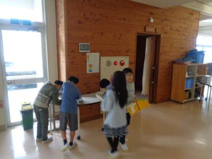 社会では、学校にはどのような消防施設があるか調べました。1階から3階まで、すみずみまで調べました。予想していたよりも消火器や消火栓がたくさんあることに驚いていました。