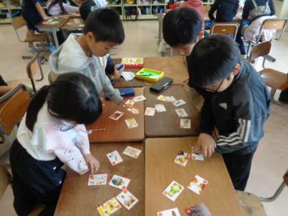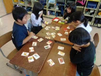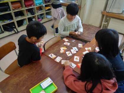 ことわざの学習でことわざかるたにも挑戦しました。楽しくことわざを知ることができました。