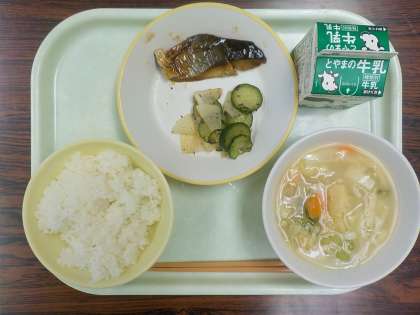 今日の給食メニュー:11月18日(月) 公開日 2024/11/18 更新日 2024/11/18 全校 今日の給食メニューは ごはん ふくらぎの照り焼き 大根のえごまサラダ 具だくさん汁 牛乳 です。