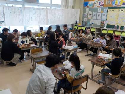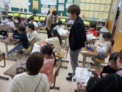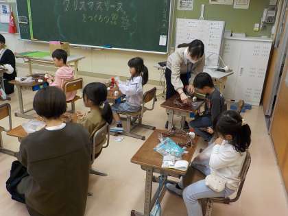 クリスマスリース作りに取り組みました。アサガオのつるがどんどん変身をしていきます。