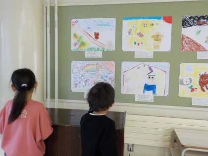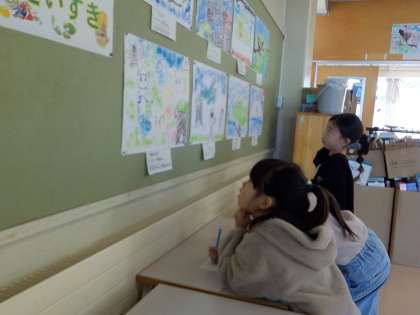 「おはなしだいすき」の鑑賞の様子です。友達の作品の素敵なところや真似したいところを鑑賞カードに書いて、伝え合いました。友達の素敵なところを見つけるのがとても上手になってきた子供たちです。