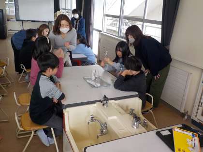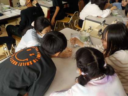 理科「もののとけ方」の学習で、塩のとける様子を予想したり、観察したりしました。