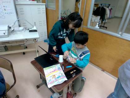 自分が書いた説明が、ちゃんと伝わるのか不安と楽しみが入り混じった2年生でしたが、無事におもちゃを仕上げてくれ、一緒に遊んで楽しむことができました。