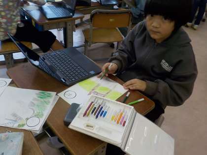 大庄のすてきを絵カルタで表現しています。読み札も子供たちが考えています。