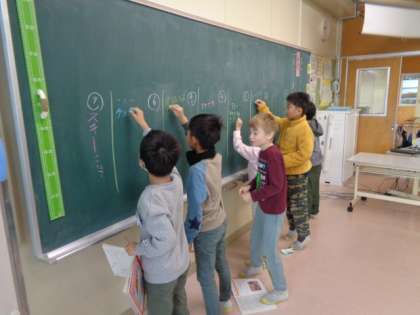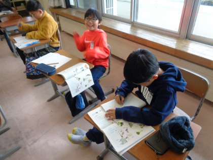 国語では、冬の言葉集めをしました。席替えをして新しいグループの仲間とできるだけたくさん言葉を見付けました。そのあとは、冬の俳句や短歌を作ったり、冬休みにしたいことを短い文にまとめたりして、自分で表現方法を選んで表しました。雪やクリスマス、冬休みが待ち遠しい子供たちです。