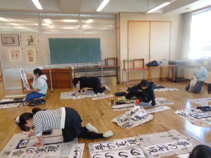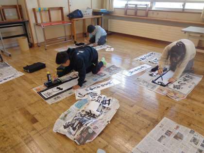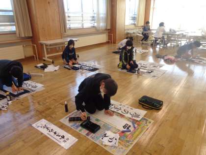 書き初めの練習を開始しています。今年度の6年生は「夢の実現」です。「の」の形や、「夢」のバランスが難しいようで、練習を繰りかえしていました。