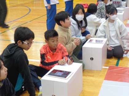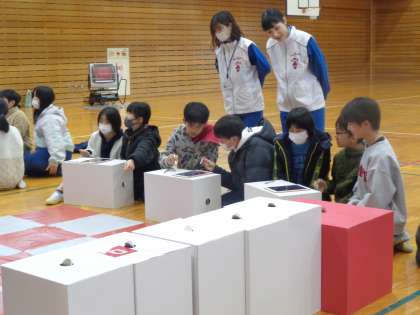 今日は、プログラミング教室がありました。村田製作所の先生方に教えてもらい、ロボットを目的地まで動かすにはどのようにプログラムを組んだらよいかを教えてもらいました。