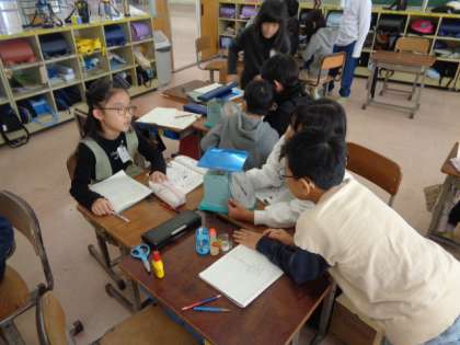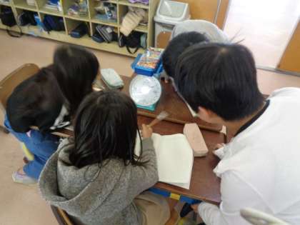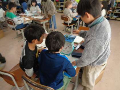 算数では、重さの学習に取り組んできました。今日は重さの見当をつけて、いろいろな重さをはかりました。予想よりも重かったり軽かったりして、興味をもちながらいろいろな重さをはかることができました。今度は、今日はかったことを生かしてキログラムをつくります。
