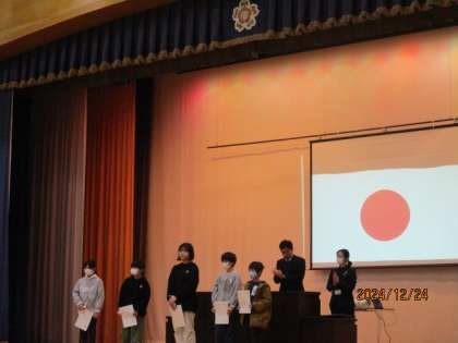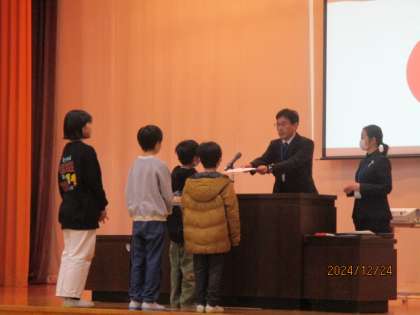 今日は終業式でした。防火ポスターで表彰されている様子です。