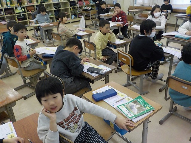 2年生教室でも新出漢字の書き取り練習を行っていました。