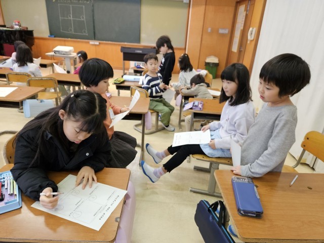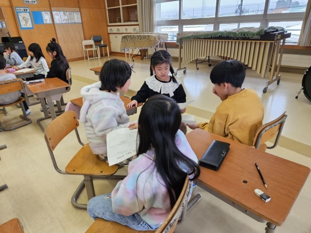 音楽の鑑賞の様子です。「にんぎょうの ゆめとめざめ」という曲を聴きました。曲の様子の変化を聴き、どの場面を表しているのかを話し合いました。様子を思い浮かべながら聴いていた子供たちです。