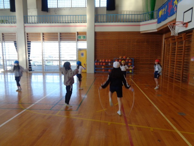 体育では、なわとびに取り組んでいます。短なわでは、自分が取り組みたい技にたくさん挑戦したり、ペアで楽しく跳んだりしました。大なわでは、記録が伸びるように声を掛け合いながら跳ぶことができました。これからも楽しんで身体を動かしましょう。