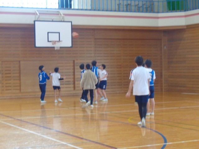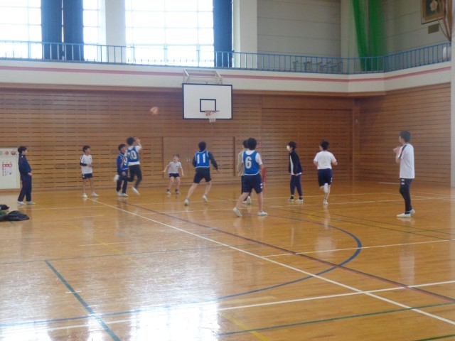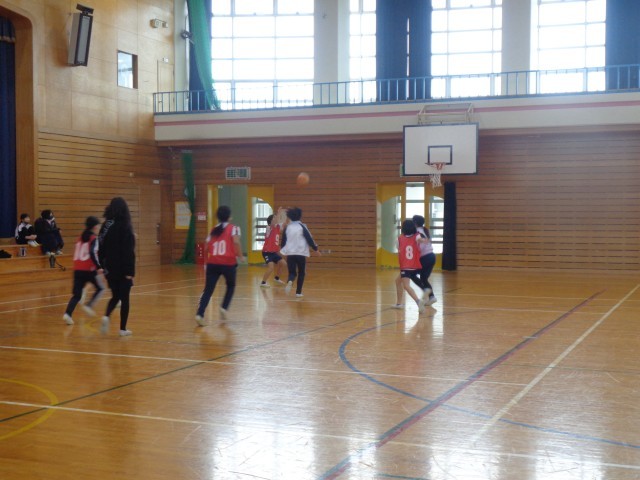 体育ではバスケットをしています。ダブルドリブルやトラベリングに気を付けながら、試合をしました。