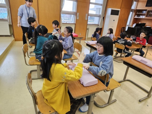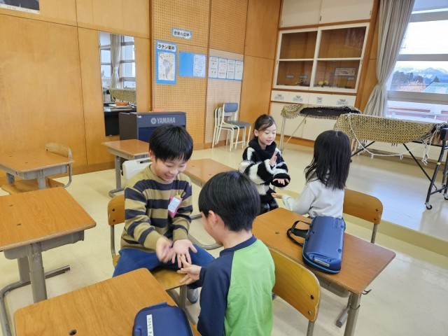 音楽で「おちゃらか ほい」をしました。遊びながら楽しく歌ったり、じゃんけんをしたりして盛り上がりました。