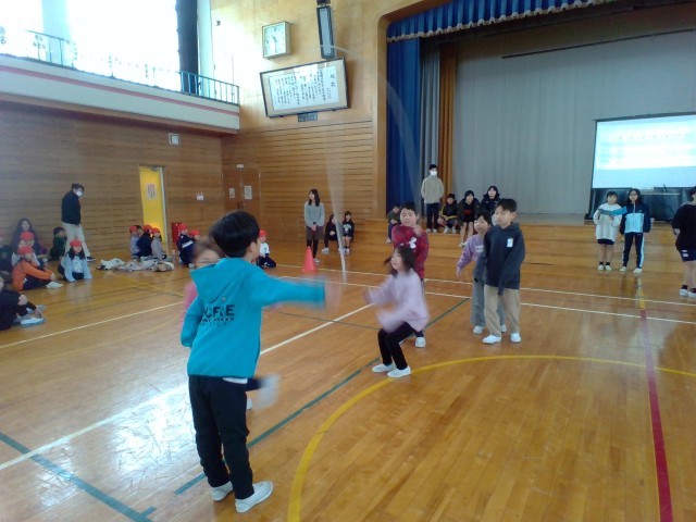 2年生 なわとび大会 公開日 2025/02/07 更新日 2025/02/07 2年生 運動委員会が主催するなわとび大会に参加しました。3学期に入ってから体育の時間に毎回練習してきたので、成果を発揮しようと子供たちは張り切っていました。全校が見ている中で緊張した様子もありましたが、真剣な表情でがんばりました。また、学年が上がるにつれて縄を回すスピードが速く、連続で跳べるようになっていて、応援しながらも見惚れる姿が見られ、さらなる向上に向けてとてもよい時間となりました。 +2