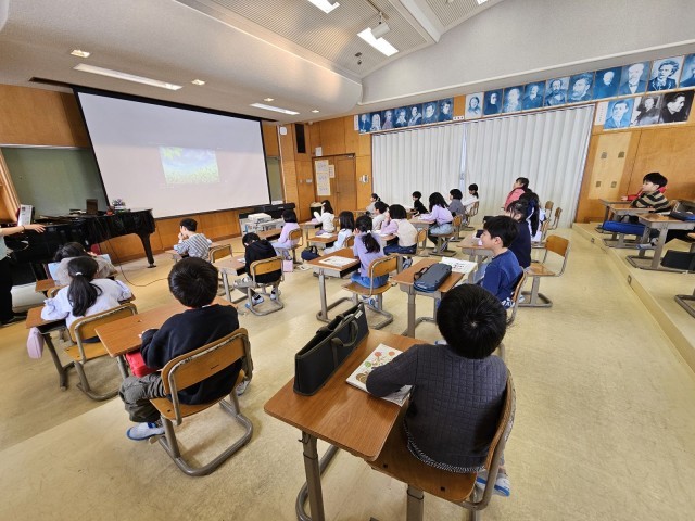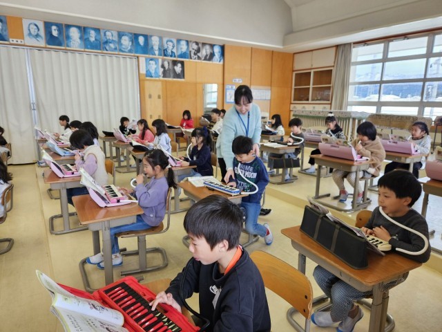 「とんくるりん ぱんくるりん」の学習の様子です。歌、鍵盤ハーモニカ、タンバリン、トライアングルの4つのパートに分かれ、それぞれの音を合わせて演奏しました。初めて合わせましたが、とても上手に合わせることができました。また、卒業式に歌う「きみに会えて」の曲を聴き、どのような曲なのか、イメージを膨らませました。これから、練習をしていきましょう。