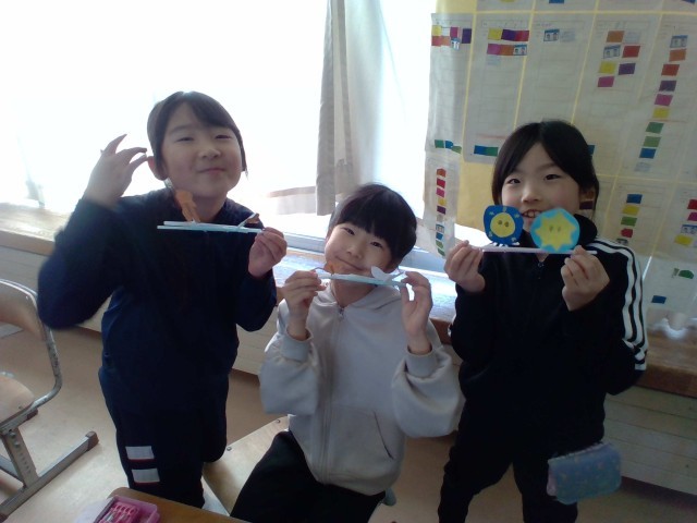 2年生 図画工作科 パタパタストロー 公開日 2025/02/26 更新日 2025/02/26 2年生 太さの異なる2本のストローを組み合わせて、パタパタ動くストローの仕組みを作りました。動き方を見て、「踊っている人みたい」「鳥の羽みたい」「クワガタのはさみみたい」等、イメージを膨らませて飾りを付けました。 +2