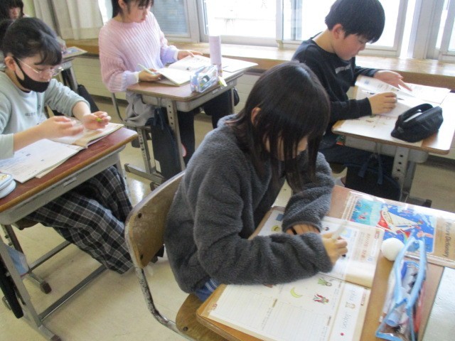 集中して取り組んでいます。テストに向けて自主学習も頑張っています。