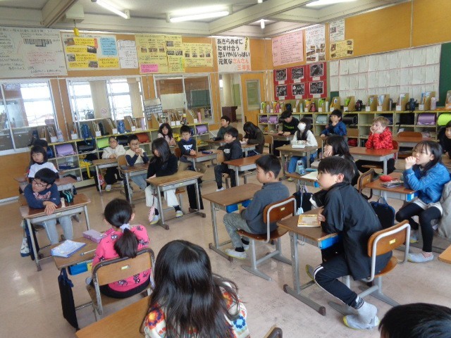 今日は、今学期最後のお話の会でした。一冊目は、物語の本を読み聞かせしていただきました。心温まるお話で、聴き入っていました。二冊目は、人との関わり方のヒントを教えてくれる本でした。4月から一つ学年が上がる子供たちに向けて、大切なメッセージをたくさんいただきました。一年間でいろいろな物語にふれることができましたね。