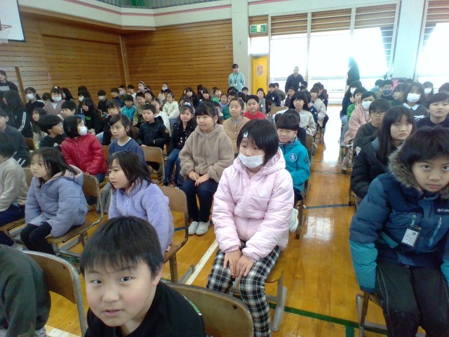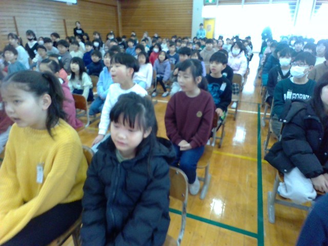 今日は、静かに立ったり座ったりする練習と、全校合唱の練習をしました。