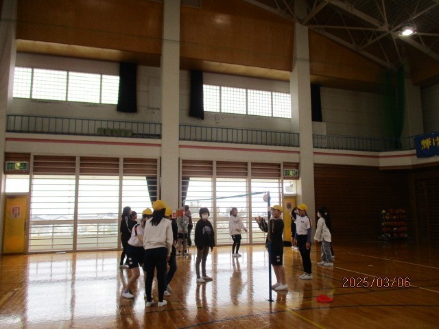 キャッチバレーボールの練習や試合をしています。試合の後は振り返りを行い、よりよいルールに変えていきます。