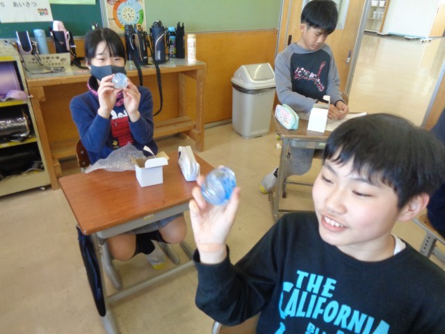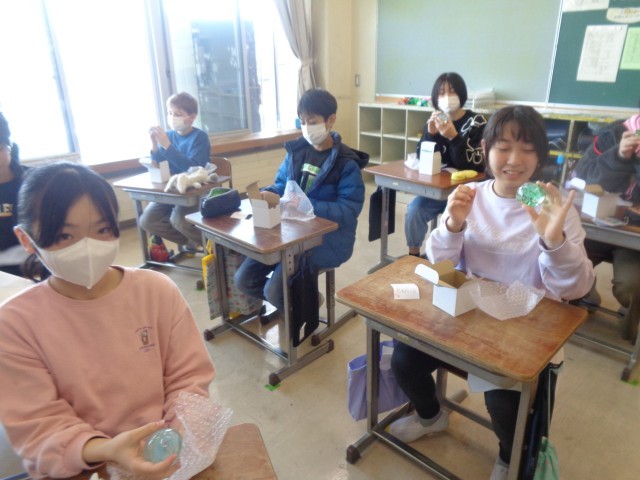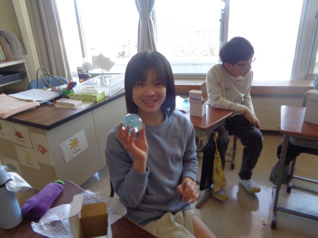 1月に作っていた卒業記念制作のペーパーウエイトが届きました。みんな心待ちにしていました。とても綺麗で、「すごーい!!」とあちこちで声があがっていました。卒業式当日には、保護者控え室に展示します。