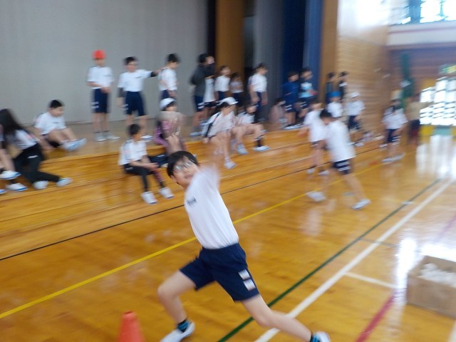 体育科では、短距離走の練習とソフトボール投げの練習をしました。みんな走ったり投げたりするときのコツをしっかり聞き活動に取り組みました。記録測定にむけてさらにがんばります。