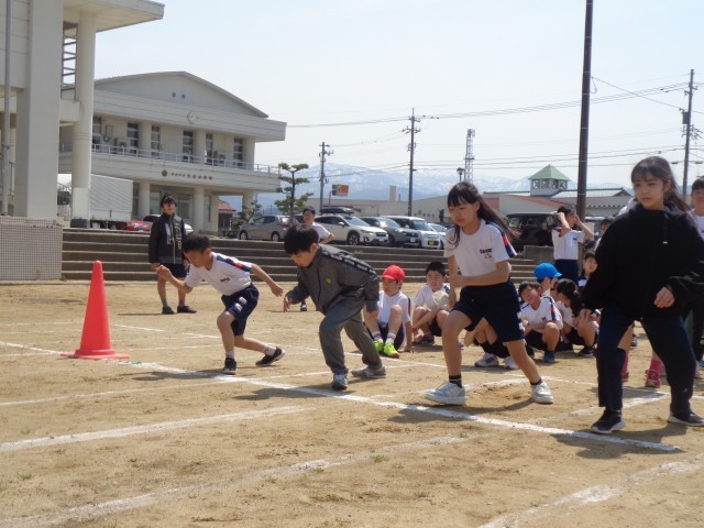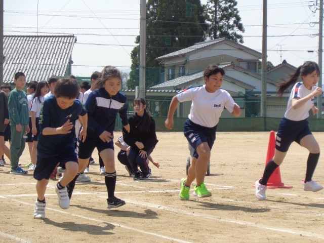 5・6年生は一緒に50m走の記録を測定しました。みんな一生懸命に走りました。タイムが速くなり、喜んでいる姿が見られました。