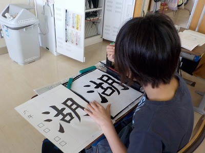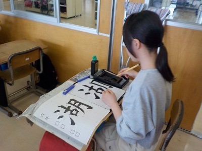 今年度初めての書写。「湖」を手本を見ながら集中して、丁寧に書きました。