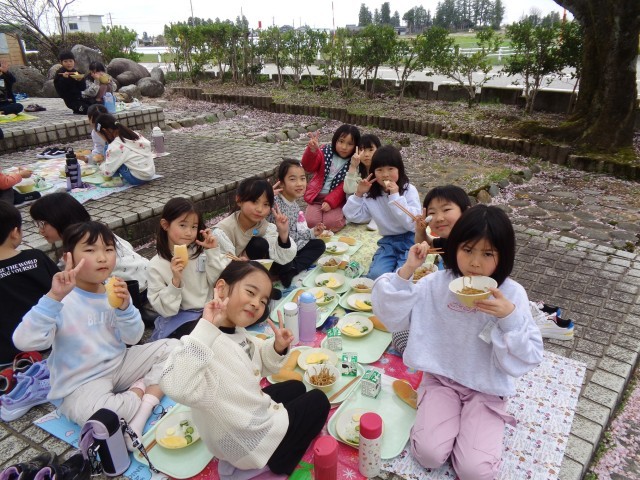 2年生 お花見給食 公開日 2025/04/20 更新日 2025/04/20 2年生 桜がきれいななかよし広場で、お花見給食をしました。少し風が冷たい日でしたが、太陽が出ると暖かさを感じました。「外で食べるともっとおいしい」と笑顔で給食を食べる姿がとてもほほえましかったです。 +3