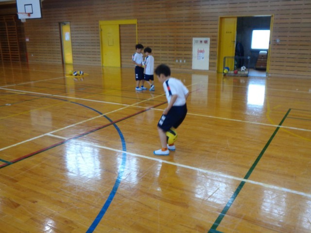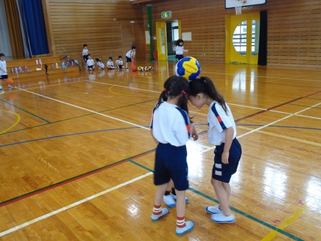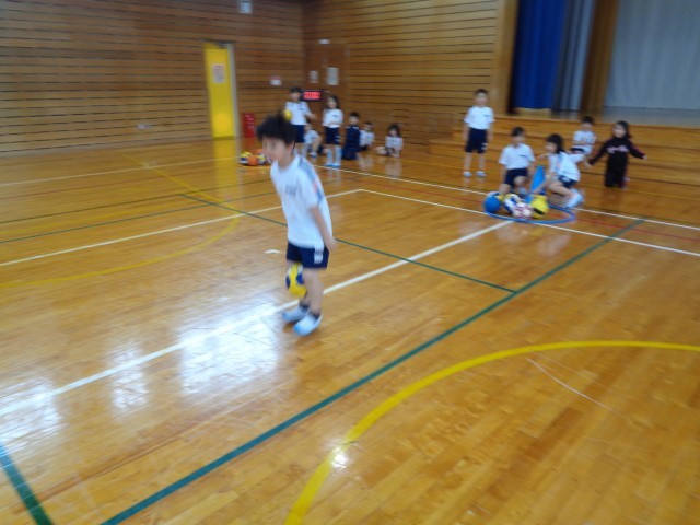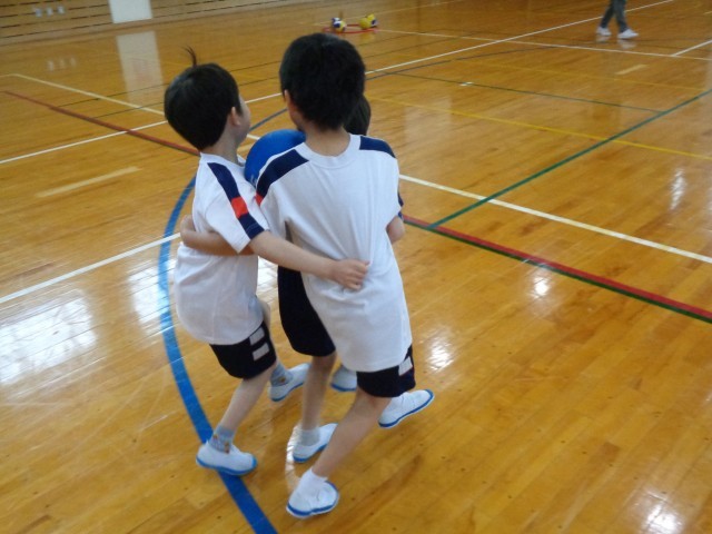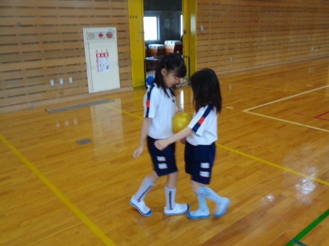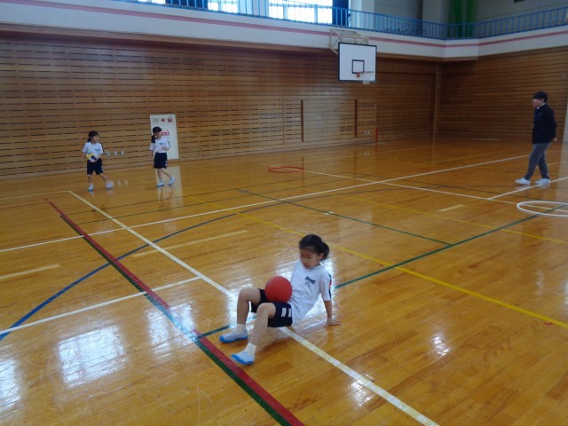 何度か繰り返す中で、「ボールをギュッと固定すると速く運べる」ということに気付いた子供たちでした。