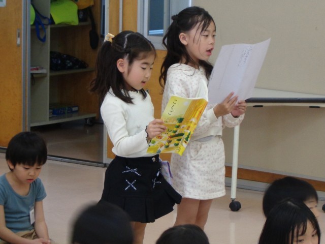 2年生 1年生に学校紹介1 公開日 2025/04/24 更新日 2025/04/24 2年生 1年生に、大庄小学校のことを知ってもらおうと、学校紹介を企画しました。はじまりの会のあと、国語科で学習した「ふきのとう」を音読しました。好きな場面を選び、心を込めて音読しました。 +6