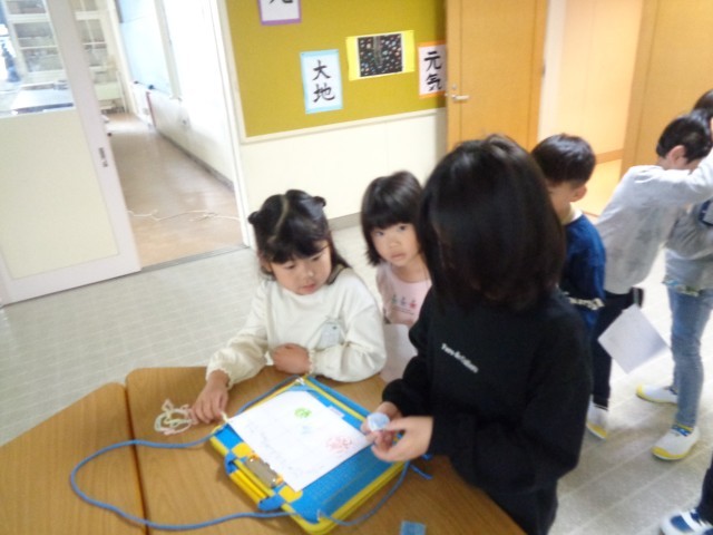 スタンプラリーのカードを用意して、手作りしたスタンプを1年生に押してあげました。