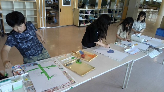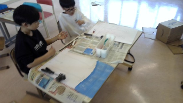 ローラー等を使って自分の思いに合った表現をしようと作成を進めています。