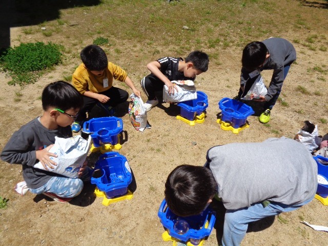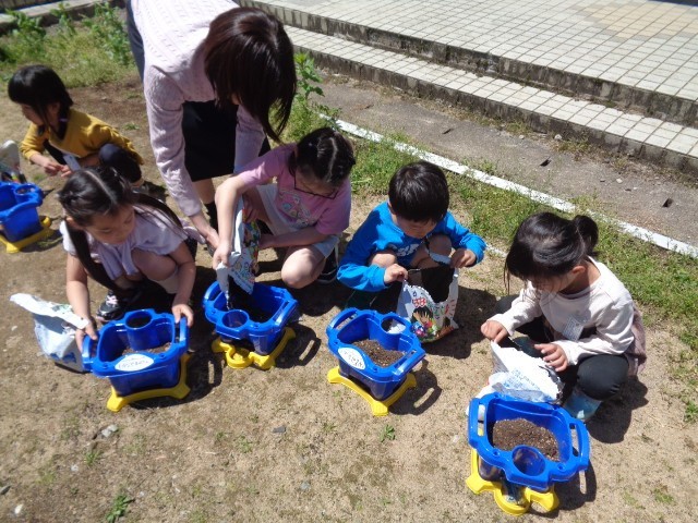生活科で、あさがおを育てるための準備をしました。土に肥料をまぜて、あさがおがよく育つように作業しました。今度はたねを選んで植えます。