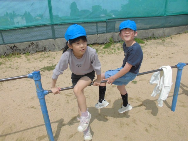 ファミリー班ウォークでは、班の仲間と協力をして、様々な課題に挑戦しました。帰校後には、グラウンドでのびのびと体を動かしました。