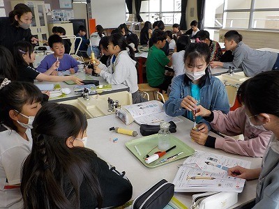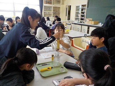 気体検知管を使い、酸素と二酸化炭素の濃度を調べる実験をしました。